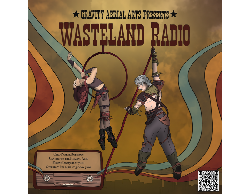 On January 23rd & 24th Gravity Aerial Arts will proudly present Wasteland Radio, their first professional aerial dance show! This show is brought to life onstage through the talented cast of aerialists and contortionists, thrilling story, incredible lighting, mesmerizing projections, and a live choir.
